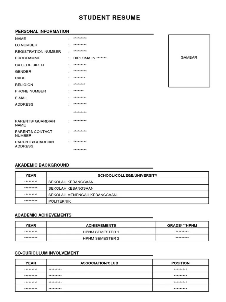 Resume Latihan Industri Politeknik - Borang Biodata Dan Resume Pelajar Politeknik Kota Bharu. Salam sejahtera kepada tuan/puan, saya merupakan pelajar tahun akhir bagi diploma teknologi maklumat dan komunikasikasi (teknologi digital) di politeknik balik . Contoh resume untuk pelajar yang mahu memohon tempat latihan industri. Cik rosidah binti ahmad pegawai perhubungan dan latihan industri politeknik . 89 downloads 2396 views 26kb size. Kindly send your resume to . Resume lamaran kerja sedikit berbeda dengan resume karya ilmiah. Resume ini saya gunakan untuk pemohonan latihan industri.